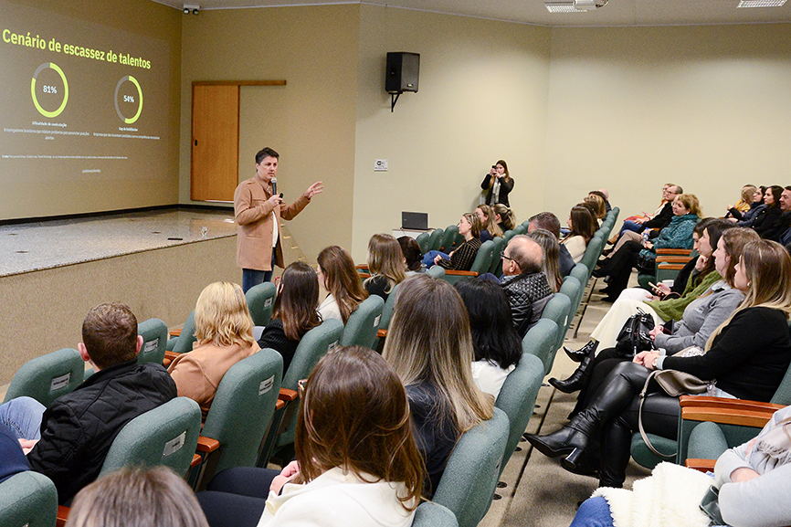 Antes da apresentação, o presidente da CIC, Carlos Bianchi, salientou que, em uma pesquisa realizada com associadas, ficou evidenciado que 87,7% das empresas possuem vagas de trabalho em aberto. “É diante desse cenário que promovemos, hoje, esta reflexão com a oportunidade de refletir sobre questões como a escassez de talentos, os desafios geracionais, o papel da educação, a cultura organizacional e, principalmente, sobre práticas eficazes de atração, desenvolvimento e retenção de profissionais”.