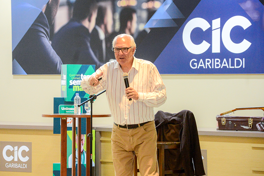 A busca por equilíbrio emocional, propósito e qualidade nas relações foi o eixo central da palestra “De bem com a vida para encantar os clientes”, realizada na noite de terça-feira, 24 de março, na sede da Câmara de Indústria e Comércio de Garibaldi.