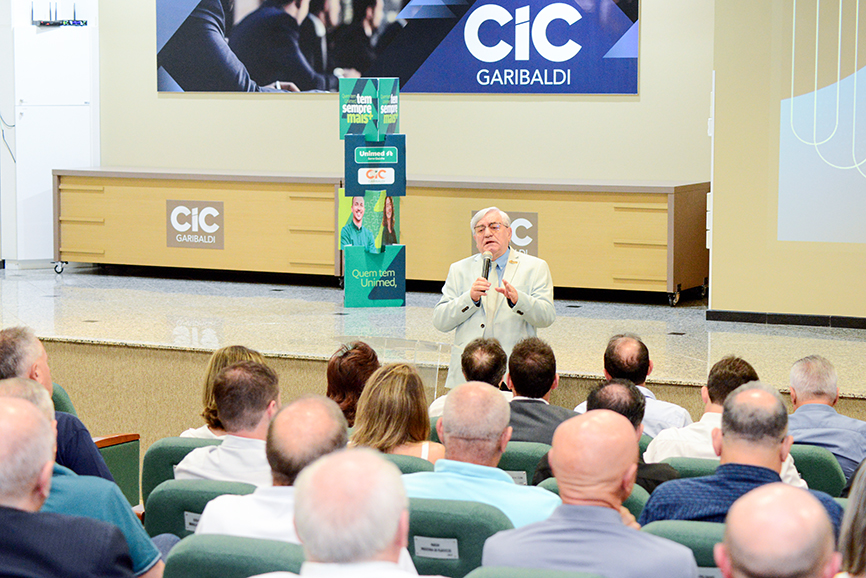 A apresentação das ações e do planejamento estratégico da Prefeitura de Garibaldi para 2026, com impactos diretos sobre o ambiente de negócios e o desenvolvimento econômico do município, foi o foco central do Bom Dia Associado CIC, realizado na manhã de terça-feira, 3 de fevereiro, na sede da CIC Garibaldi. O encontro teve como convidado o prefeito Sérgio Chesini, que abordou o tema “Gestão, desenvolvimento e visão de futuro: Garibaldi hoje e em 2026”.