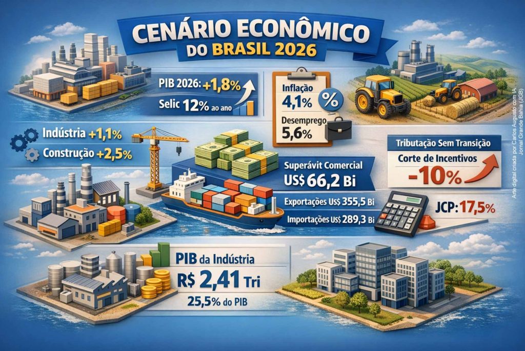 O Produto Interno Bruto (PIB) brasileiro deve crescer 1,8% em 2026, segundo projeção da Confederação Nacional da Indústria (CNI). O resultado, se confirmado, será o menor crescimento em seis anos, refletindo a combinação de juros elevados, desaceleração do mercado de trabalho, enfraquecimento da indústria e incertezas adicionais trazidas por mudanças tributárias sem período de transição. […]